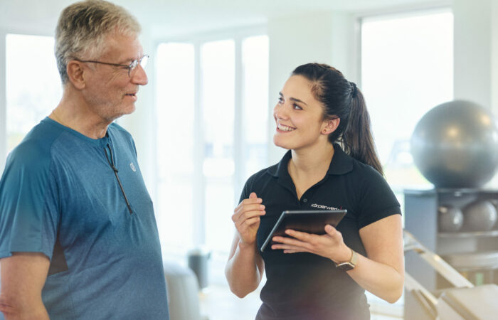 „Ein typischer Tag für mich besteht zu einem großen Teil aus der Durchführung von Trainingseinheiten. Ich plane und gestalte individuelle Trainingsprogramme, die den spezifischen Bedürfnissen unserer Patient:innen entsprechen“, erklärt Janik. Doch die Arbeit als Trainer bei Körperwerk ist weit mehr als nur das Leiten von Kursen. „Wir arbeiten eng mit unseren Physiotherapeut:innen zusammen, um sicherzustellen, dass unsere Patient:innen die richtige Unterstützung erhalten, besonders wenn es um ihre körperlichen Einschränkungen geht.“